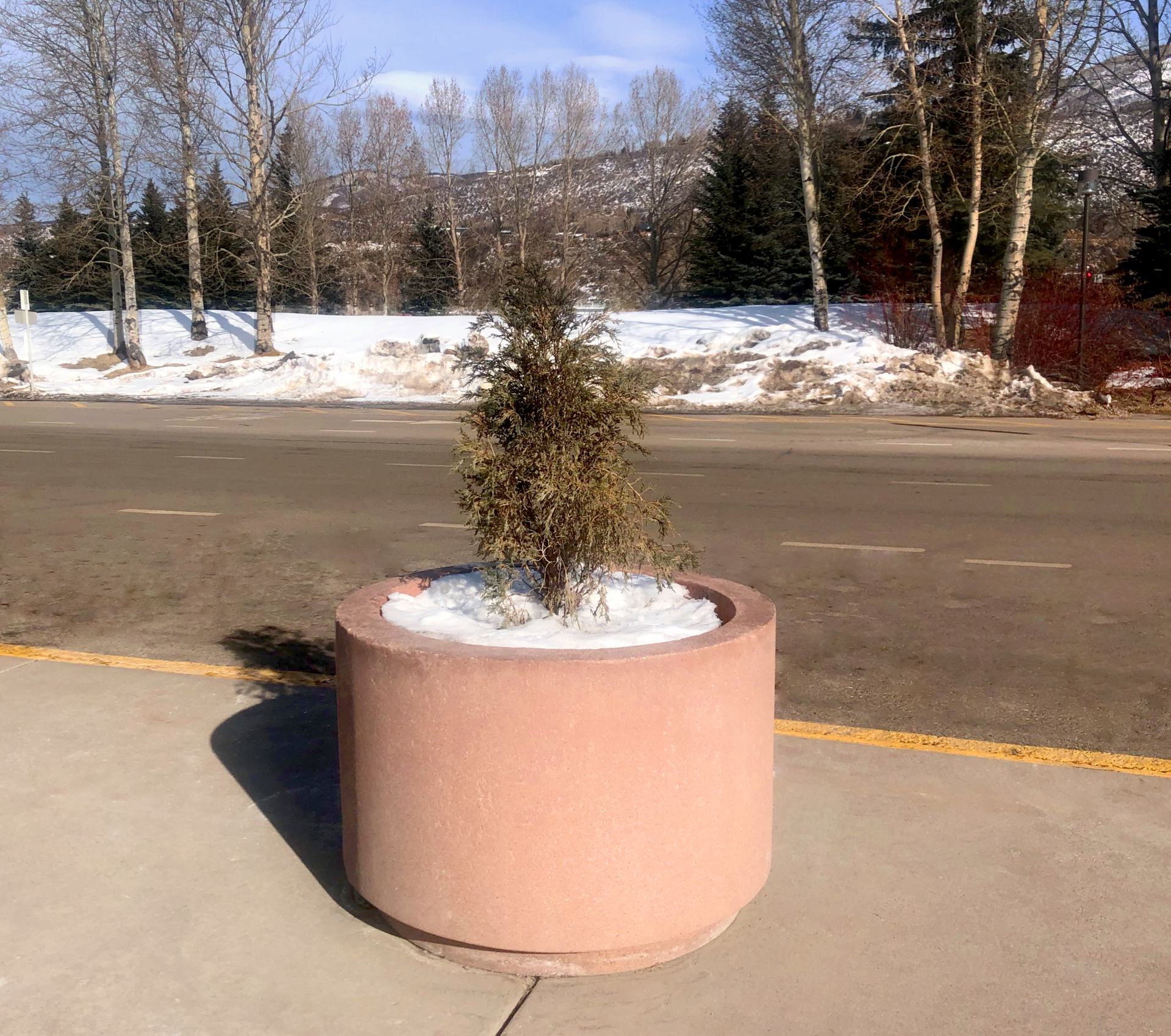 Custom freestanding bollards with matching benches and planters to decorate the Aspen airport. A great addition to a beautiful landscape.