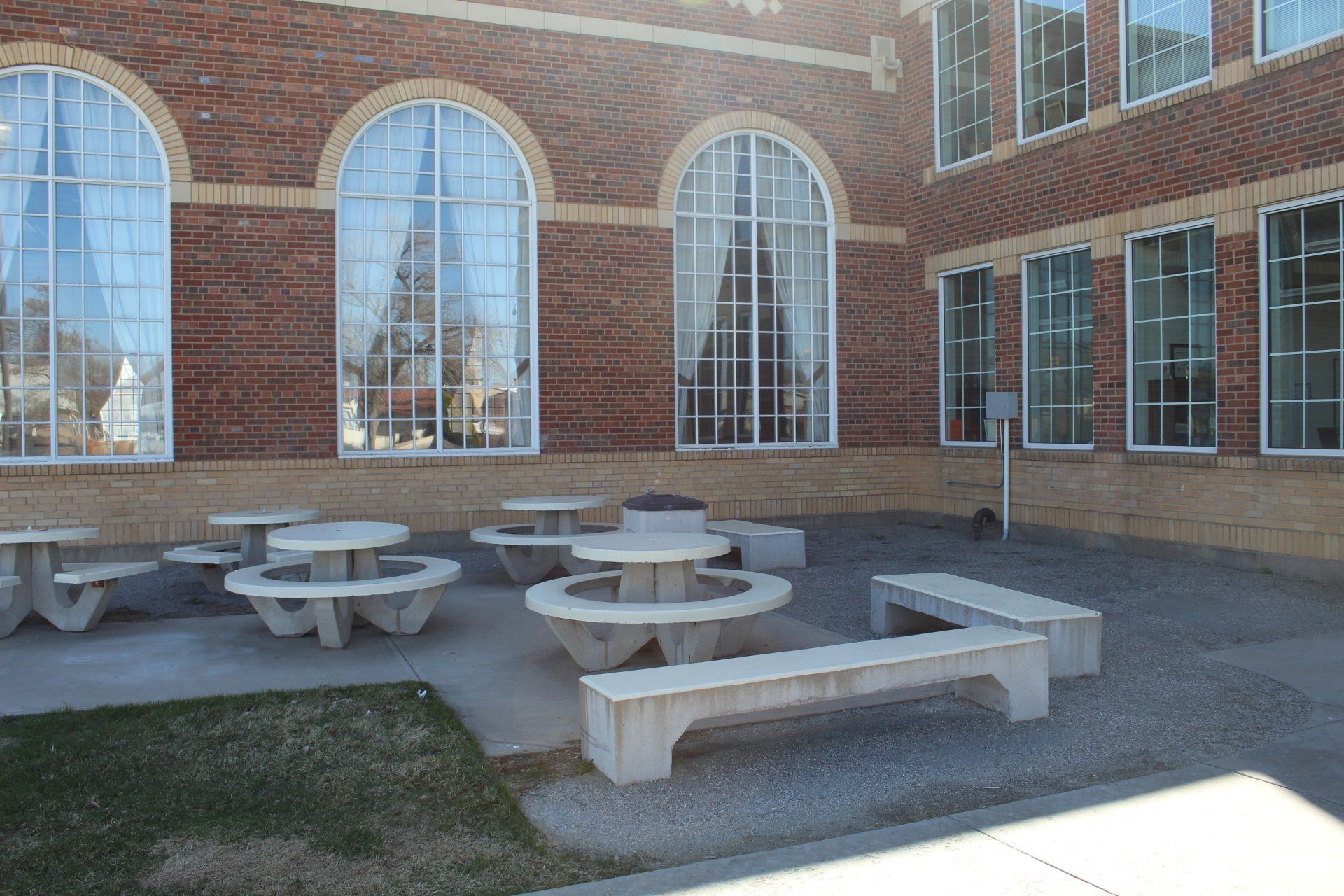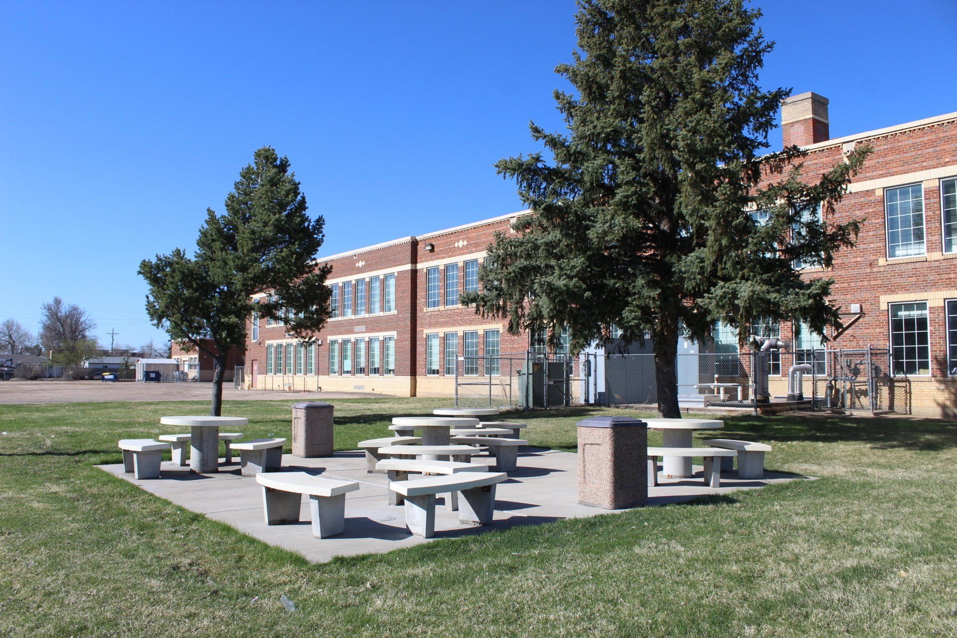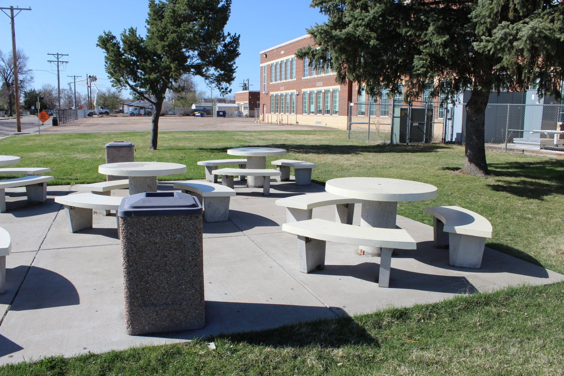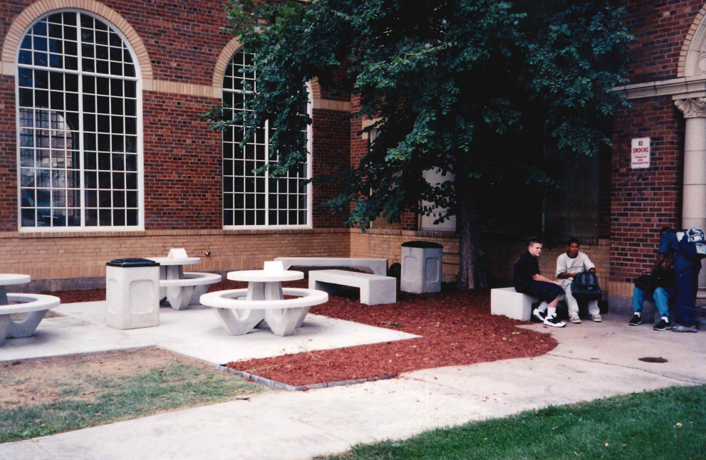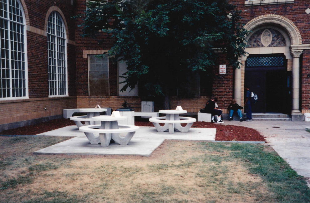 Tables, trash cans, and benches made for the Brighton Heritage Academy.