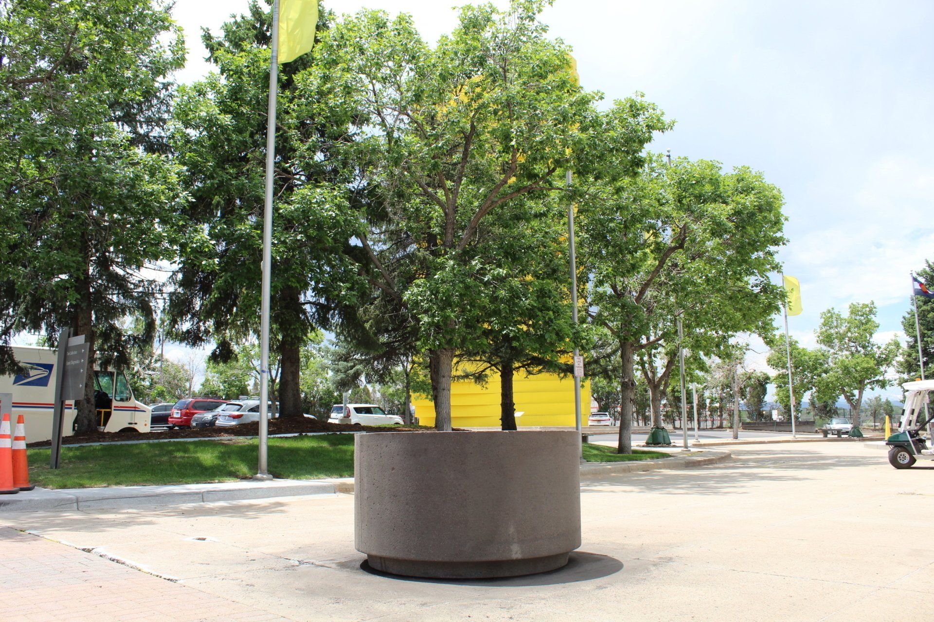 The Cascade planter is a great way to fill up a large space with something nice to look at. These planters are made to hold flowers and are durable in high traffic areas. The dark color contrast the new look of the building.