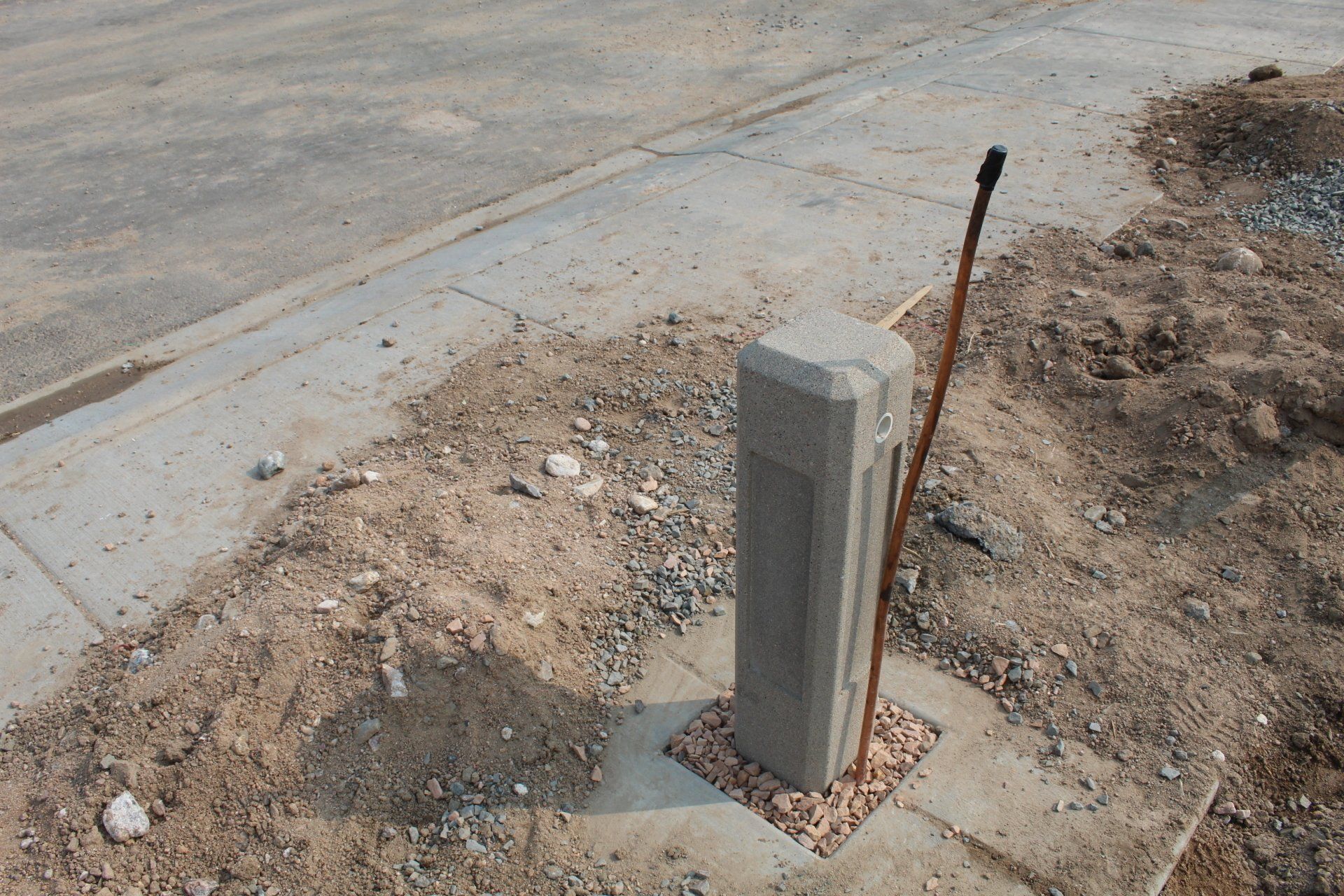 Modern precast benches with a smooth round edge finish. A safe and permanent bench that can also serve as a bollard.