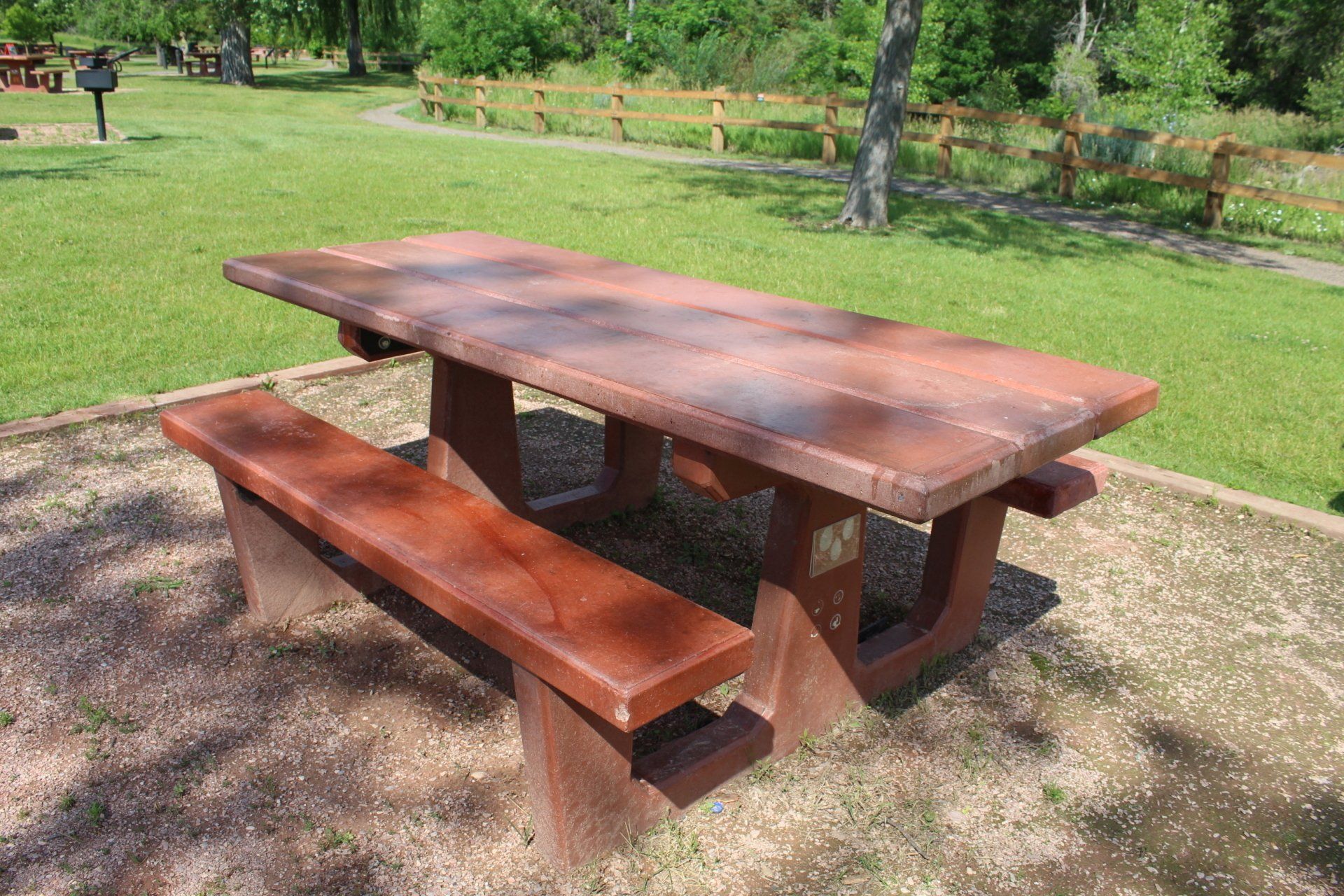 These are our mainline Rocky Mountain plank table. They offer an ADA version that is wheelchair accessible and come in a variety of colors. These tables are made to last and withstand a lot of use especially if regularly sealed, perfect for a nice look in a high traffic area.