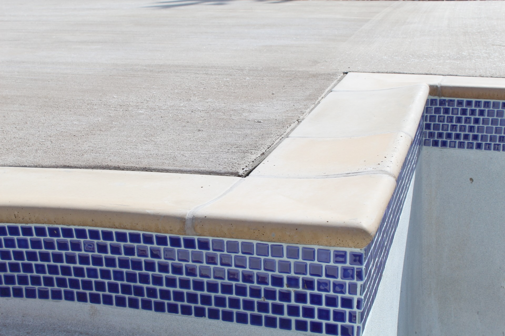 Custom Cantilever treads with a swirled broom. These are definitely not the most common tread you will find out there, but they are one of the most interesting. These cantilevers are an effortless way to add a fun look to any stringer. Pool coping is a simple way to make your pool safe and give it that traditional look.
