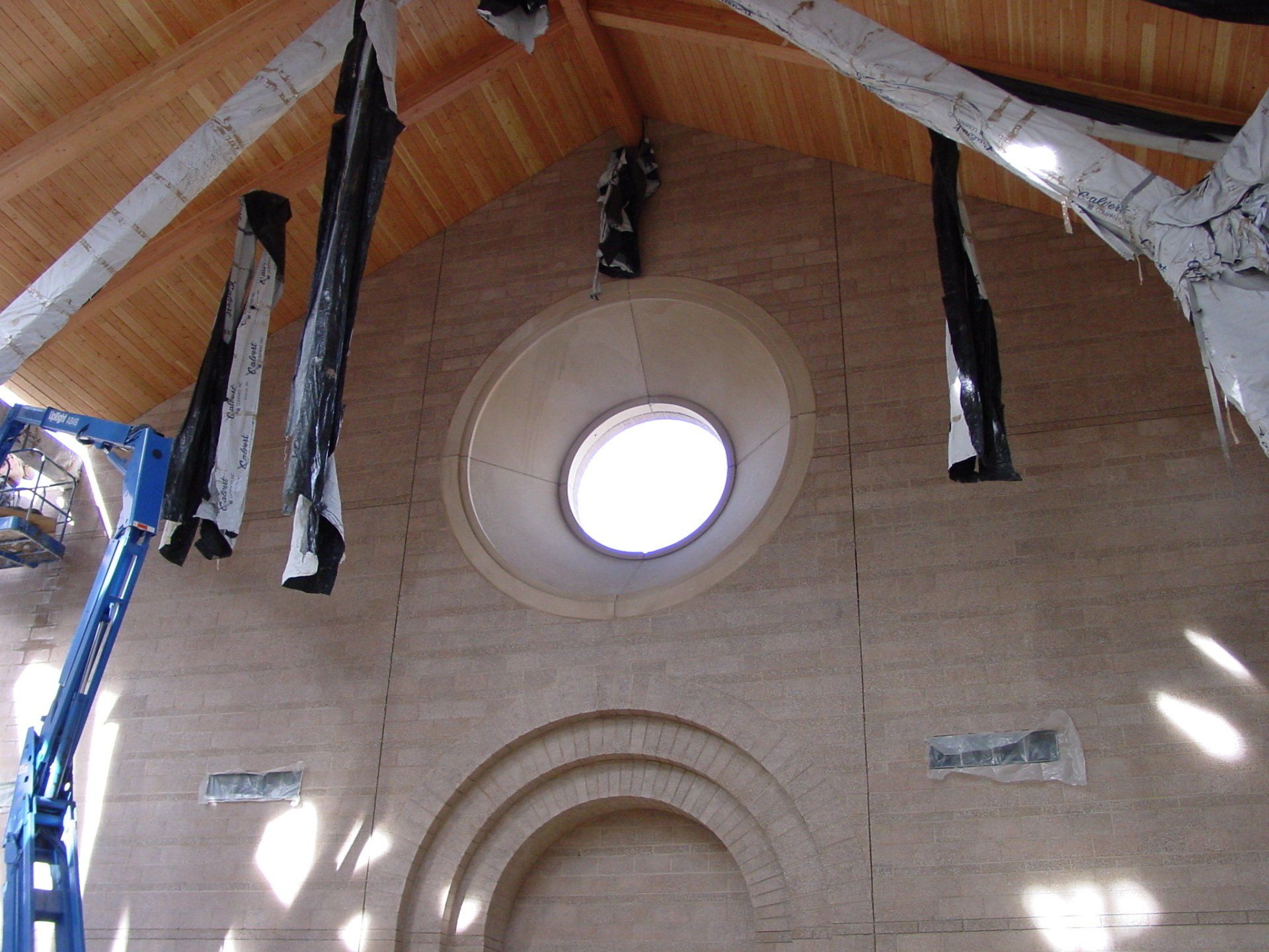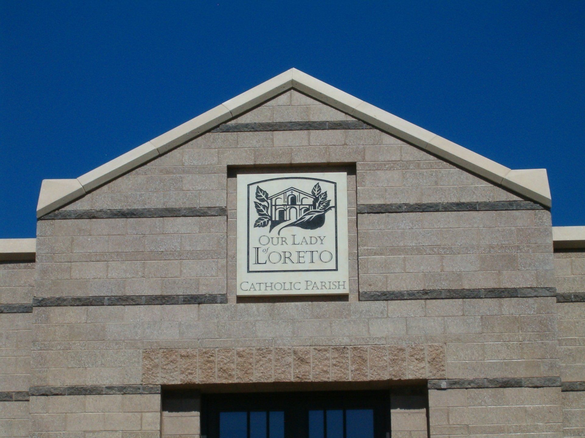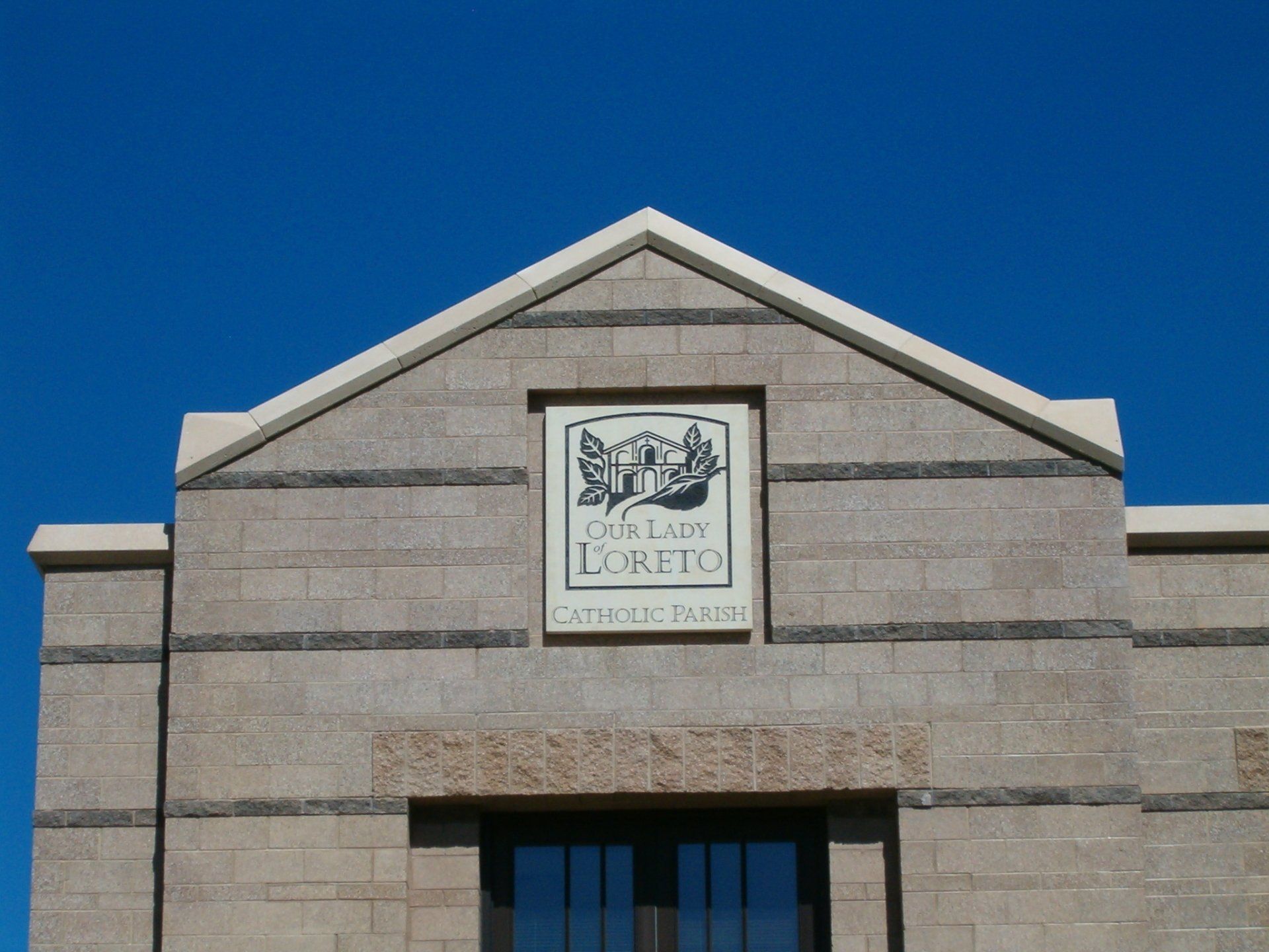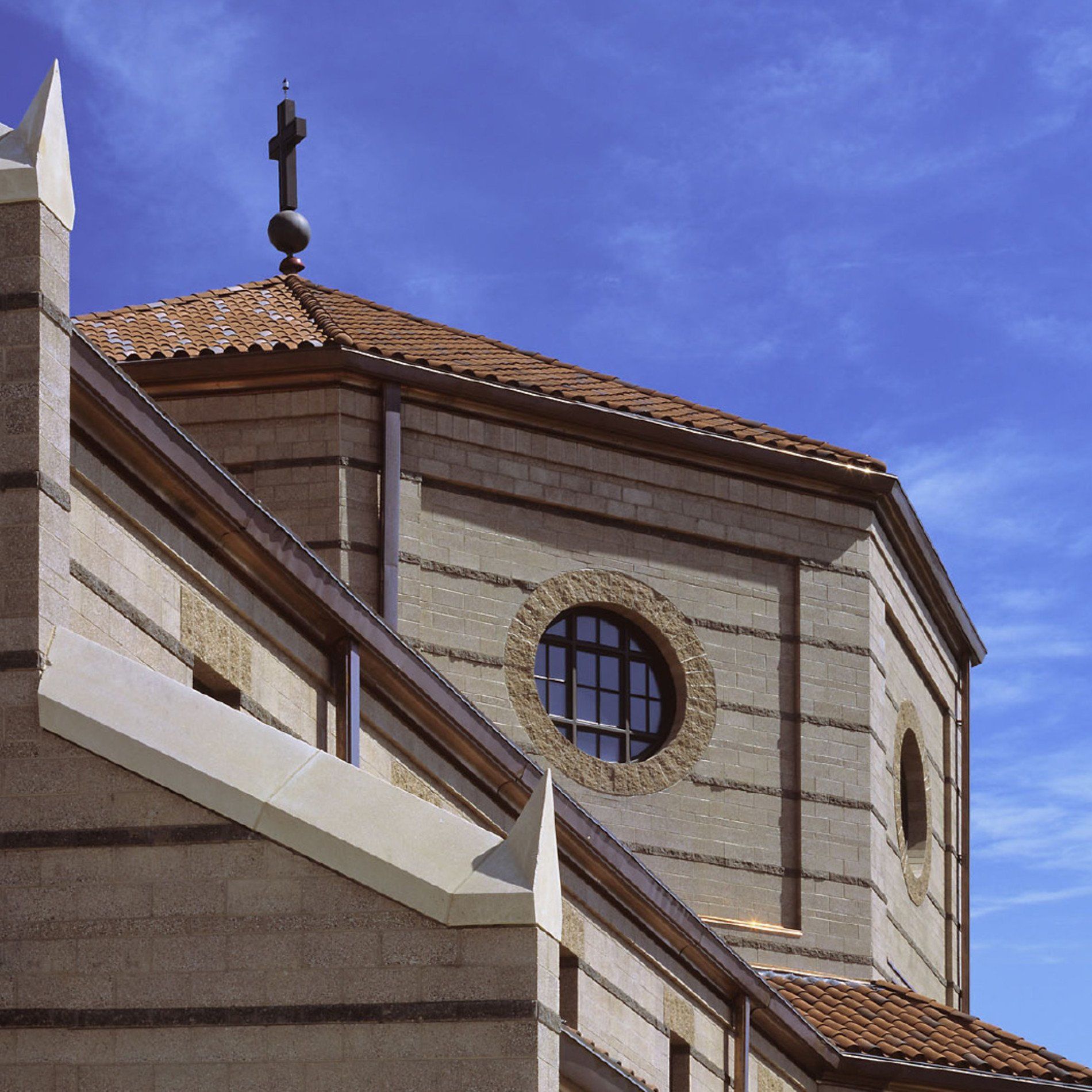 Complex custom precast sign and wall coping, window sills, parapet caps, bases, and spires made for this beautifully designed church.