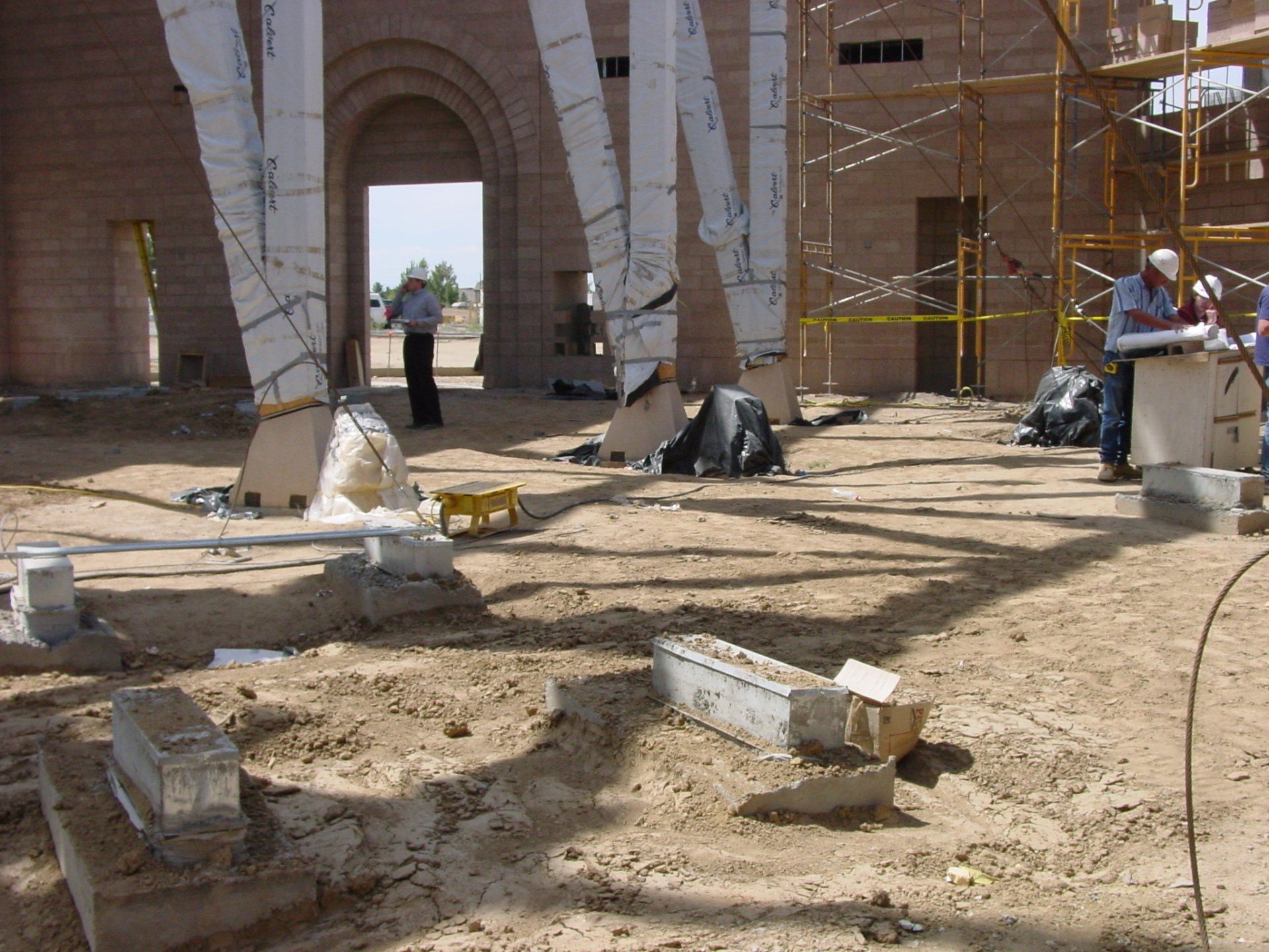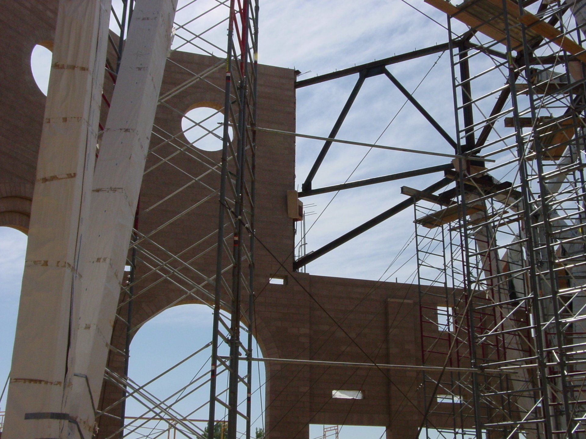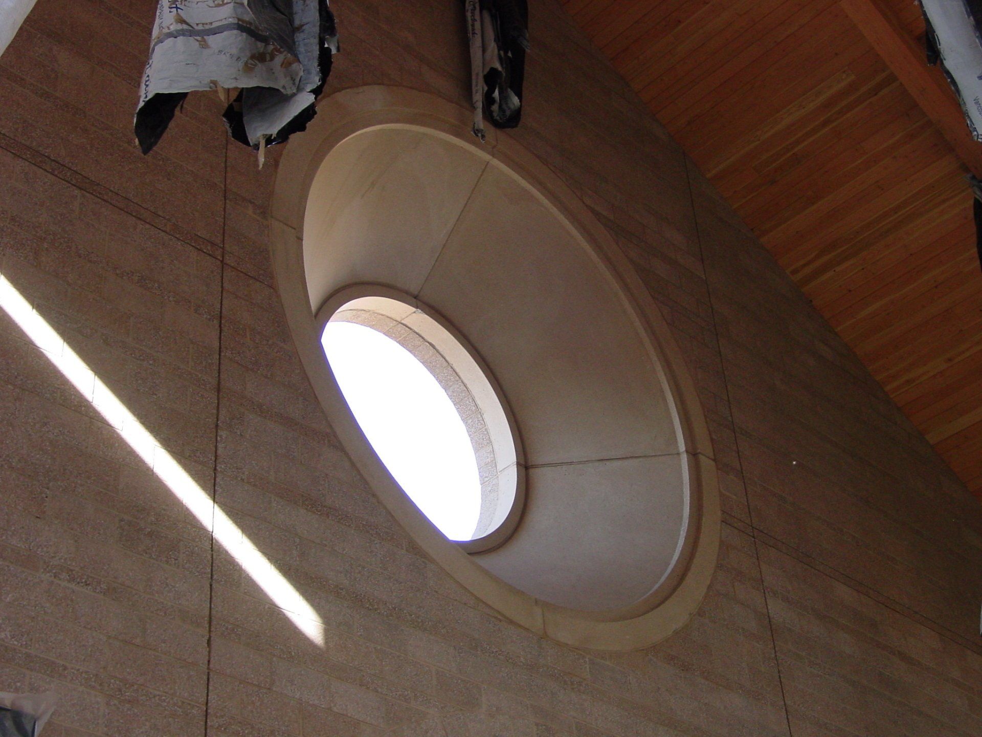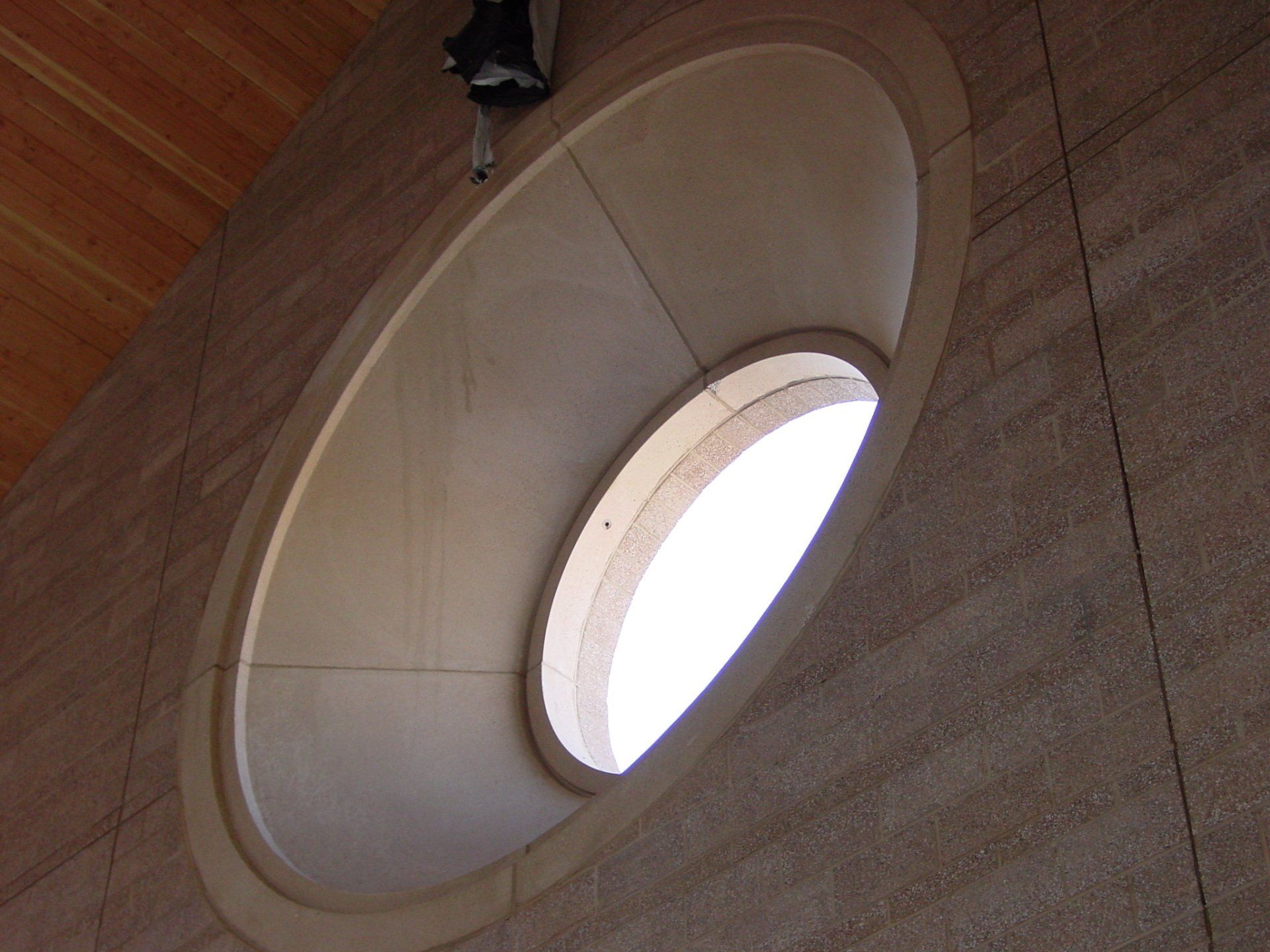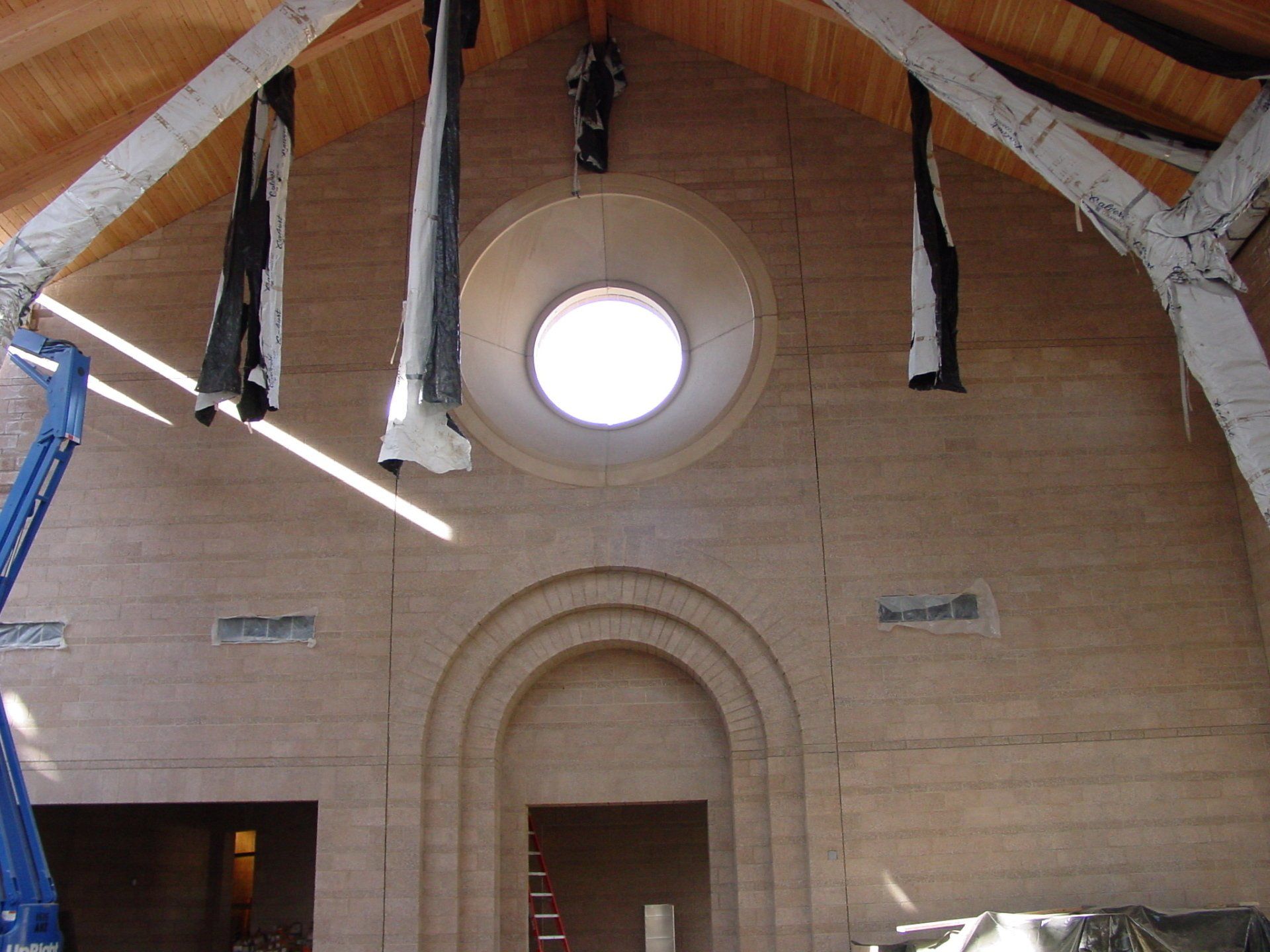 Complex custom precast sign and wall coping, window sills, parapet caps, bases, and spires made for this beautifully designed church.