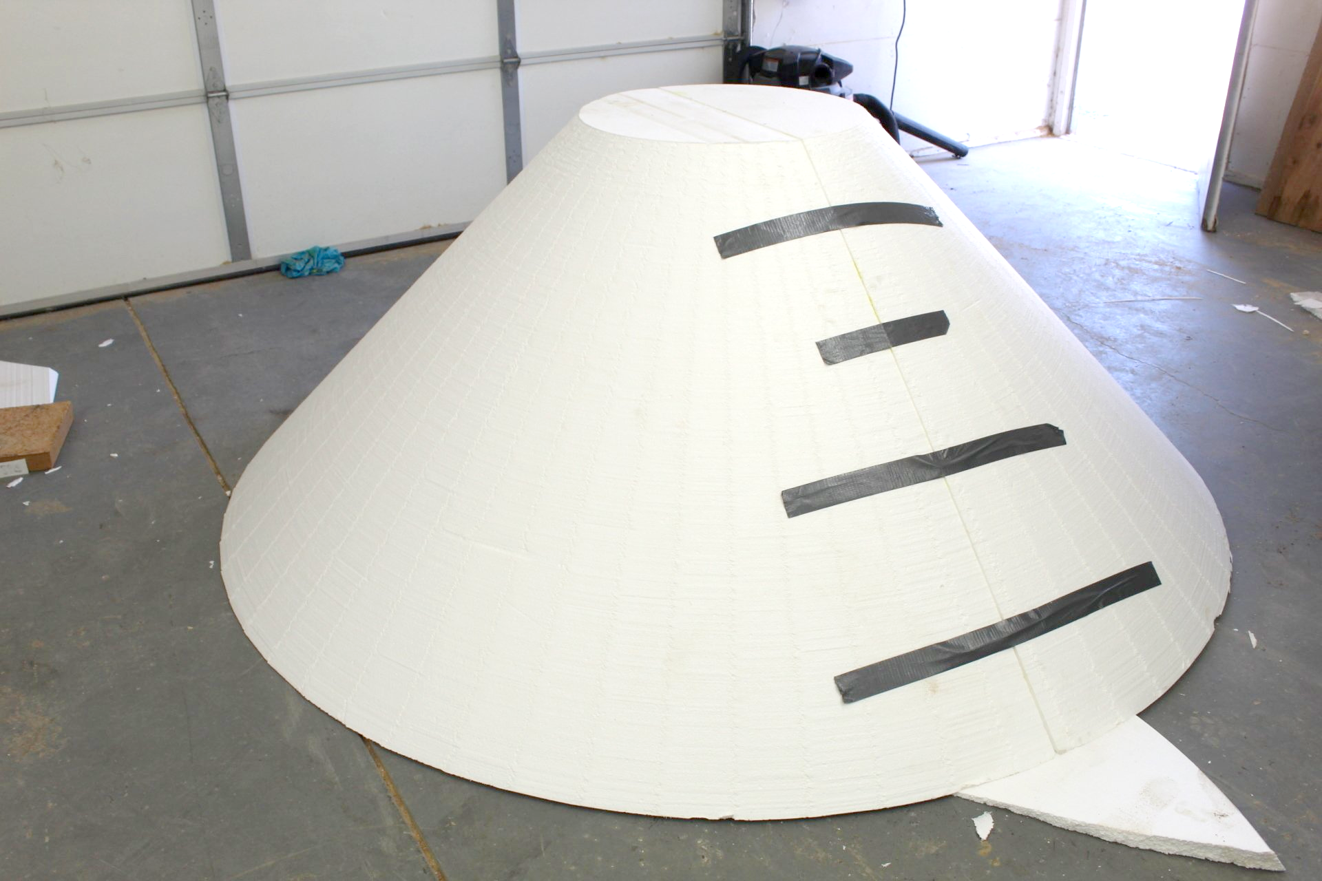 Large foam cone made as a quick solution for underground funnel. It was completed in two pieces on the hot wire.