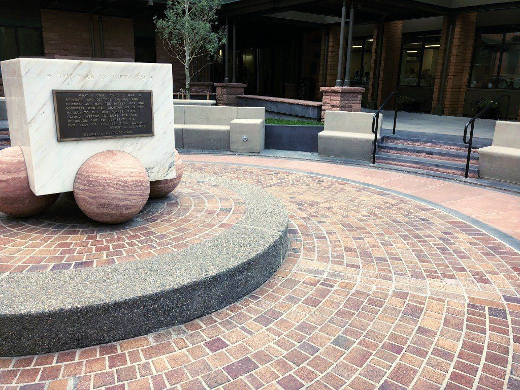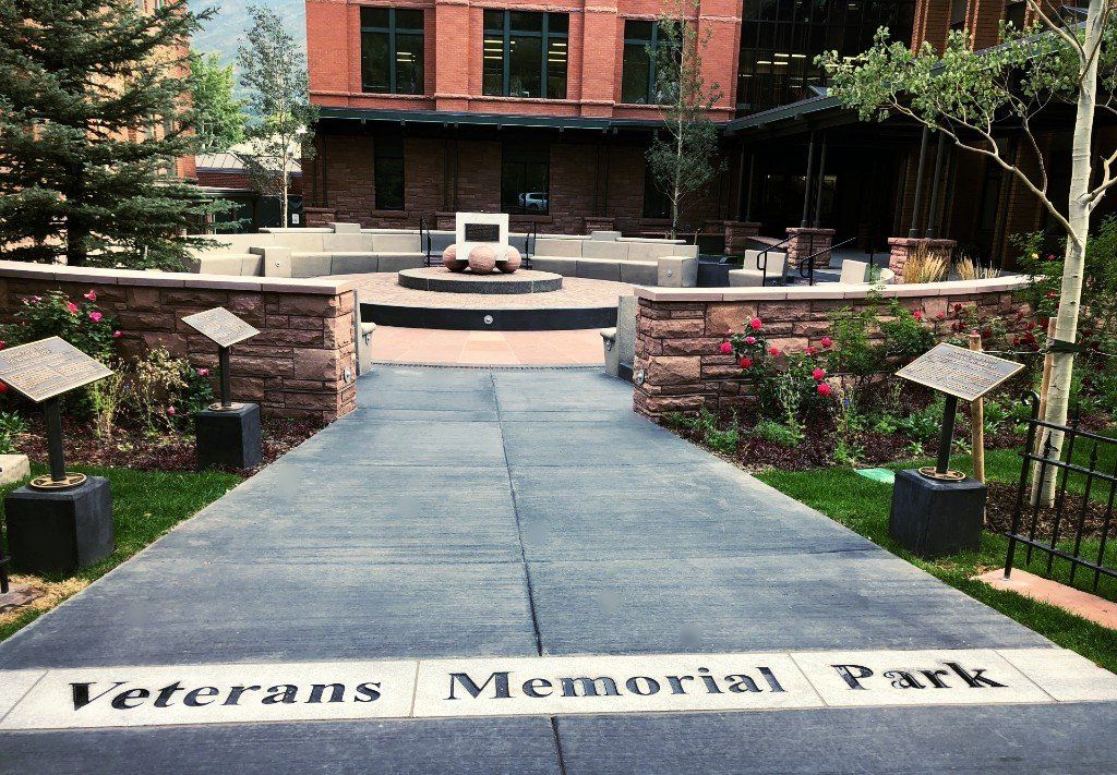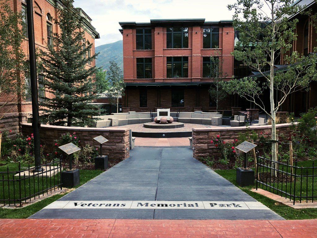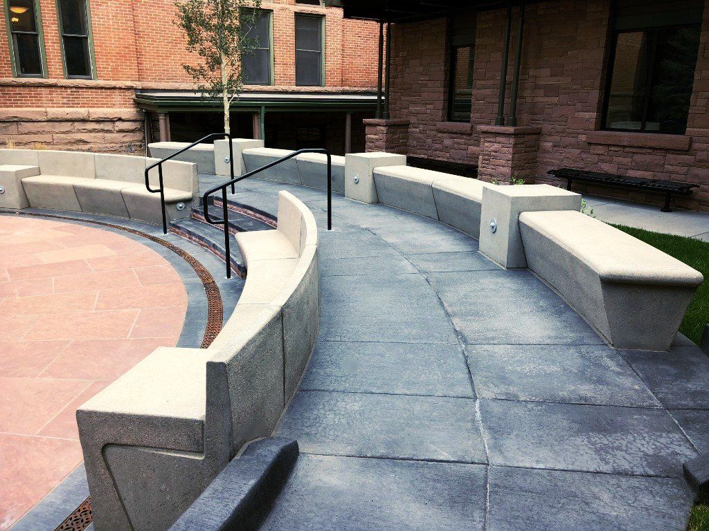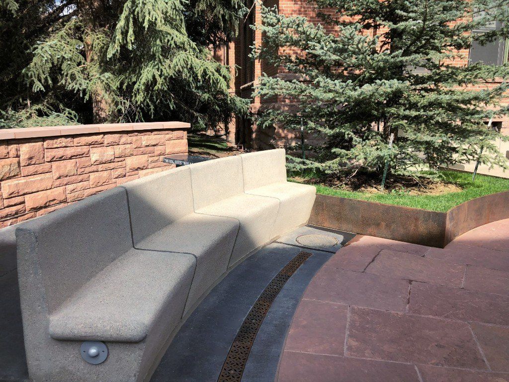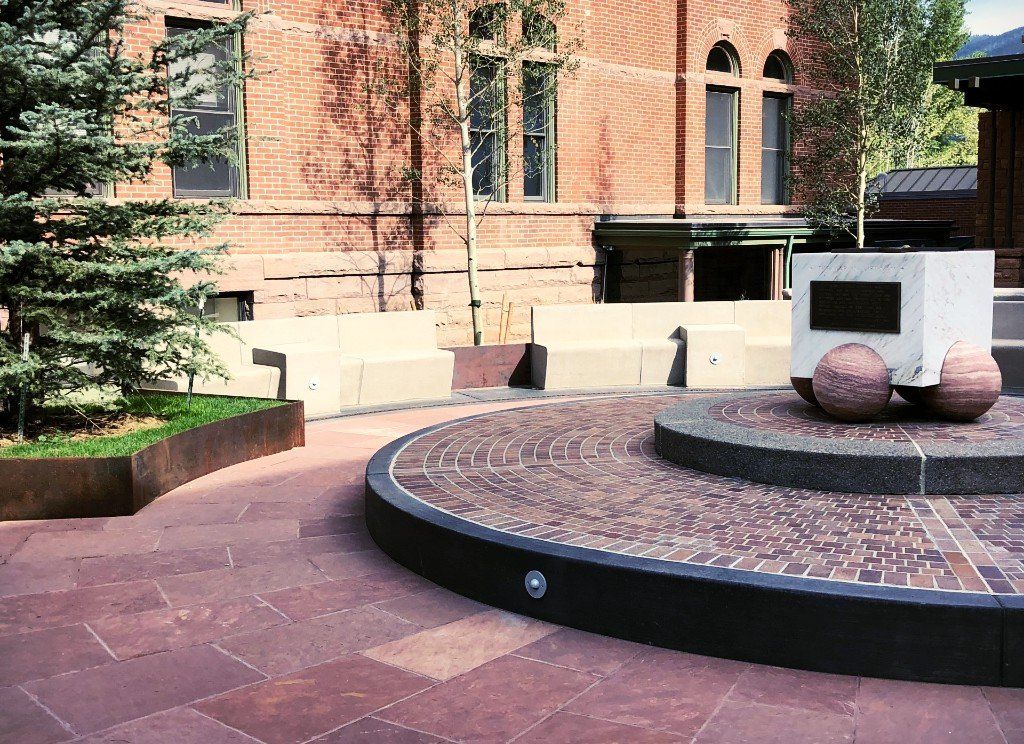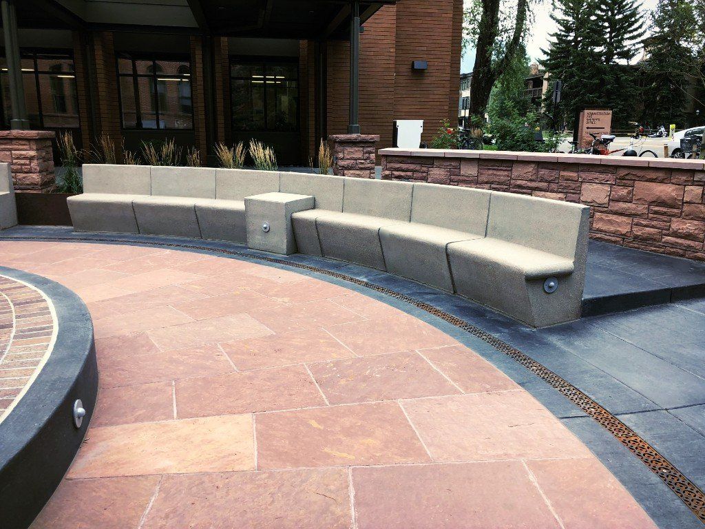 Custom radius benches and plinths made for the Veteran's Park in Aspen.